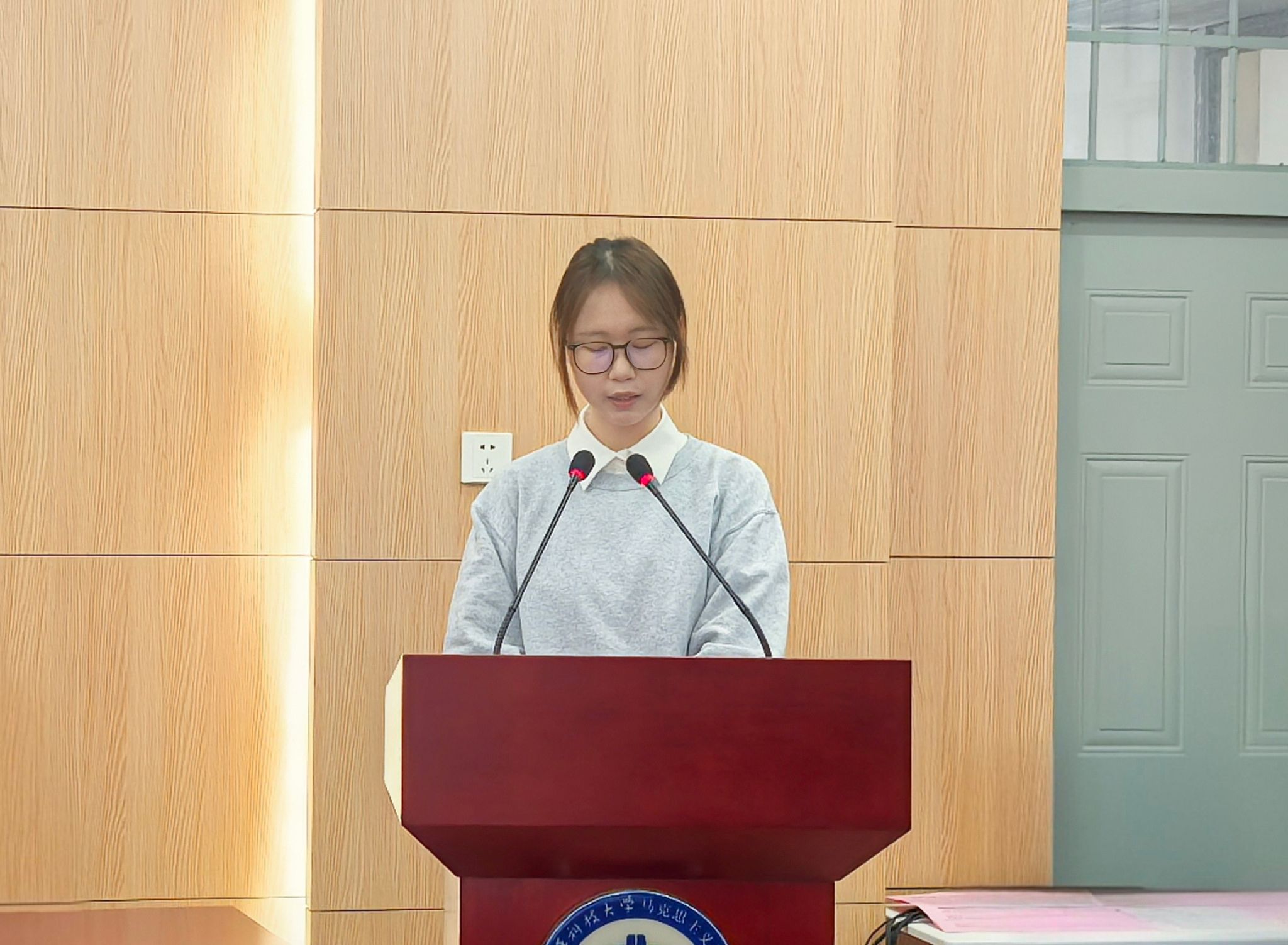 高年级学生代表金雨婷分享她在求学阶段的三点思考与全体新生共勉:向外立志,于时代变局中锚定人生航向;向内思辨,在深耕经典中突破认知壁垒;向心而行,在互鉴共生中携手并肩成长。