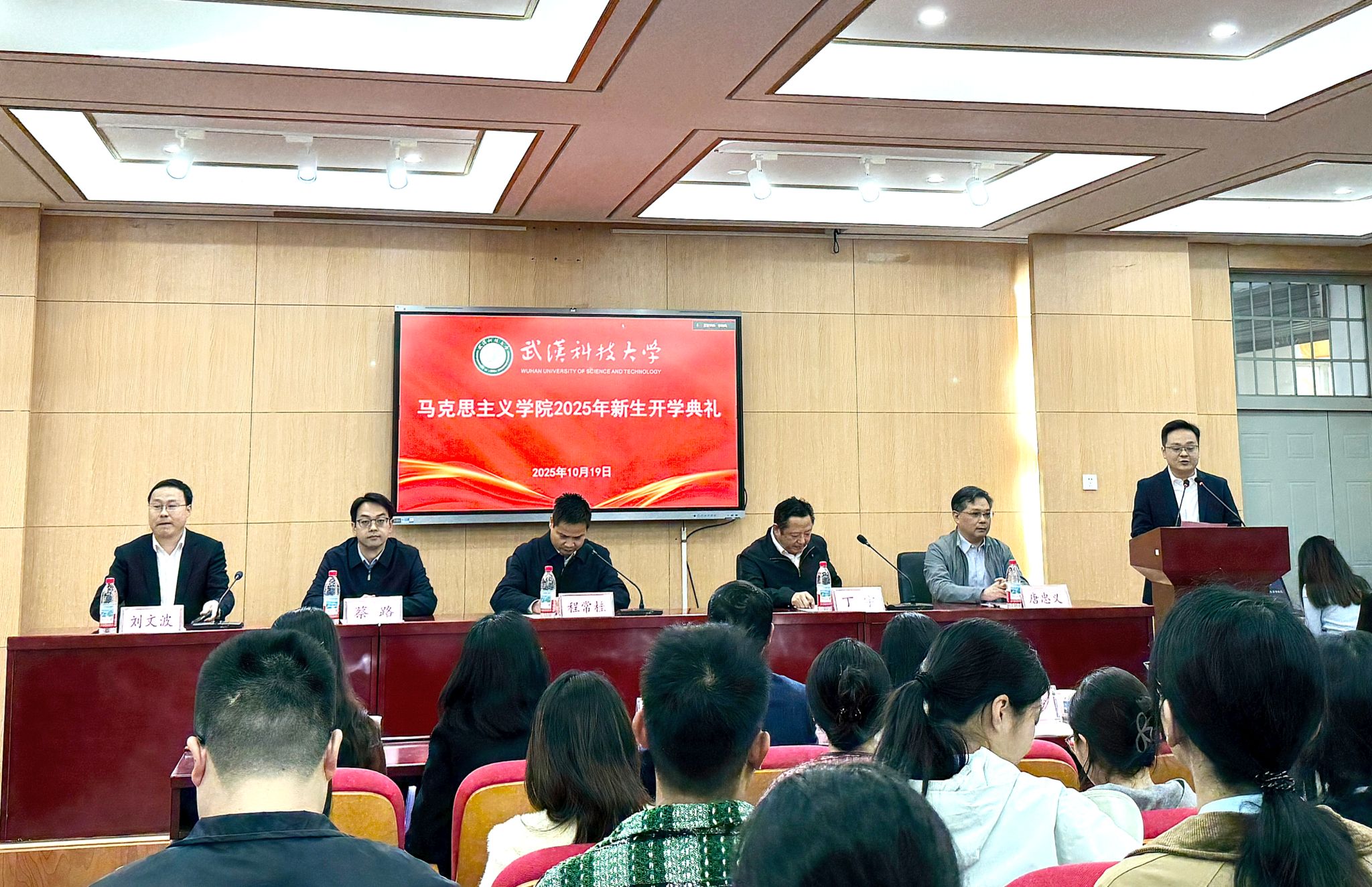 本网讯(通讯员肖文文)10月19日上午,马克思主义学院在41101报告厅举行2025级新生开学典礼。学校研究生院院长程常桂教授,本科生院执行院长丁宇教授,党委宣传部常务副部长蔡路老师,学院党委书记唐忠义教授,院长刘文波教授出席了典礼。学院党委副书记、副院长郭海沙主持典礼。