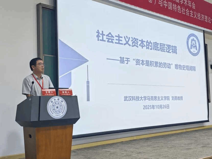10月26日上午,我院副院长刘勇教授在大会作题为《社会主义资本的底层逻辑:基于“资本是积累的劳动”唯物史观阐释》的学术报告。刘勇教授以“资本来到世间,从头到脚,每个毛孔都滴着血和肮脏的东西”著名引述开篇,指出这一论断揭示了“资本主义资本”原始积累的特有本质。通过对《资本论》三卷的文本分析,刘勇教授梳理了马克思关于资本二重性的论述。在此基础上,刘勇教授结合张宇教授在《中国社会科学》2025年第8期发表的《社会主义市场经济条件下资本理论再认识》一文核心观点,以及恩格斯在《国民经济学批判大纲》中提出的“资本是积累的劳动”这一命题,深入分析了社会主义条件下资本的特殊性。他特别强调,在社会主义市场经济中,资本应当重新嵌入社会生产链条,回归其作为“积累的劳动”服务活劳动的本源职能。