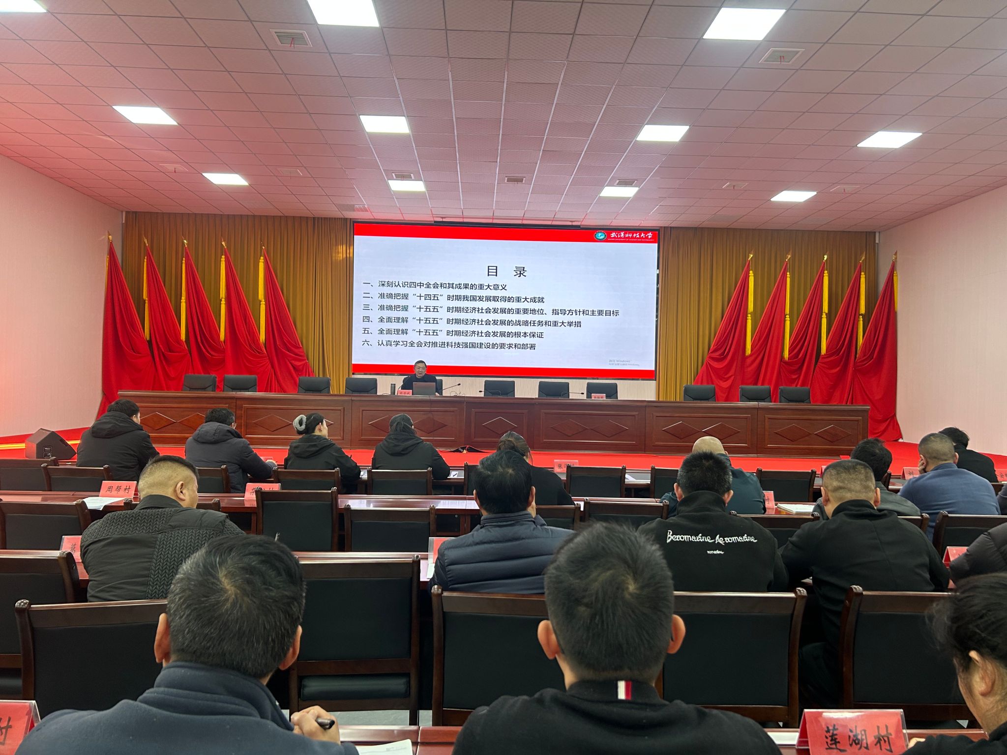 在排湖旅游度假区管委会,武汉科技大学马克思主义学院院长刘文波教授以《深学笃行四中全会精神 接续推进中国式现代化》为题,展开了一场既深刻又生动的解读。他从“十四五”时期我国经济社会发展所取得的重大成就和在历史交汇点上把握战略抉择的时代价值切入,深入剖析“十五五”时期我国发展环境基本特征,解码中国式现代化的“十五五”行动纲领,最终落脚于“以实干担当把宏伟蓝图变为美好现实”。语言生动,案例鲜活,层层递进,启人思考。