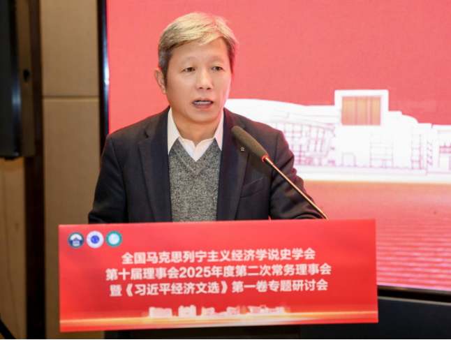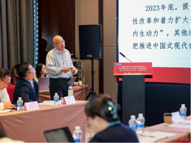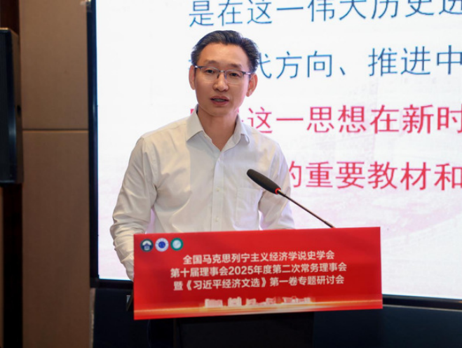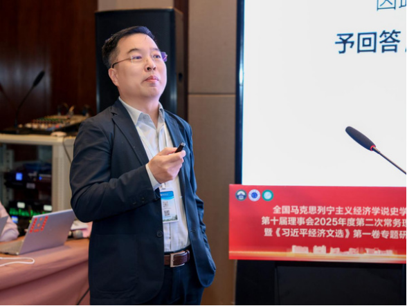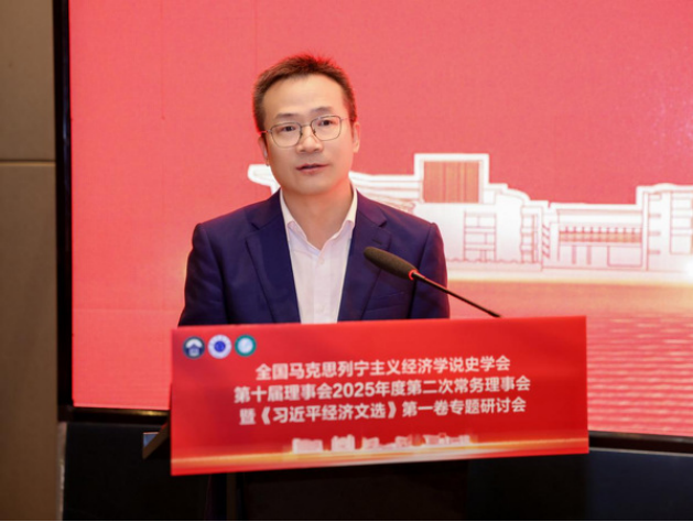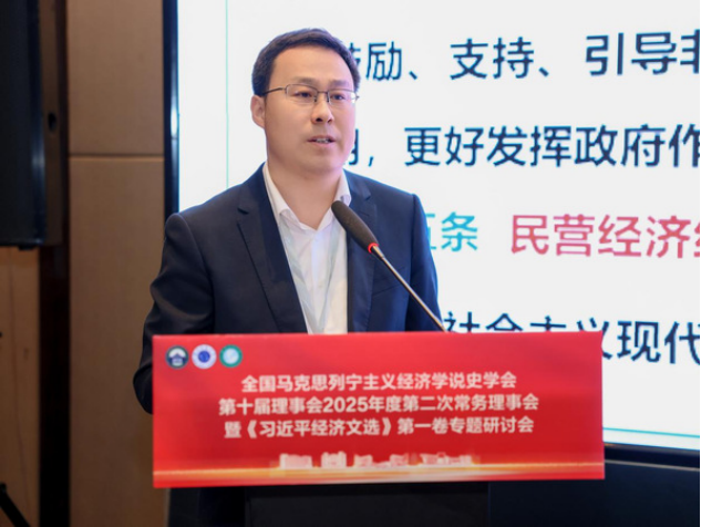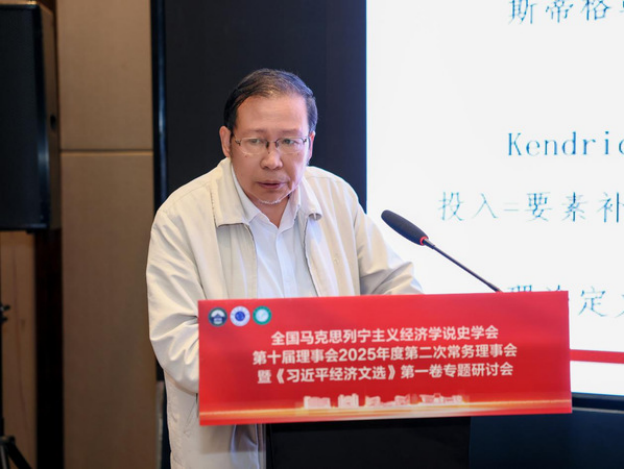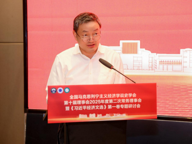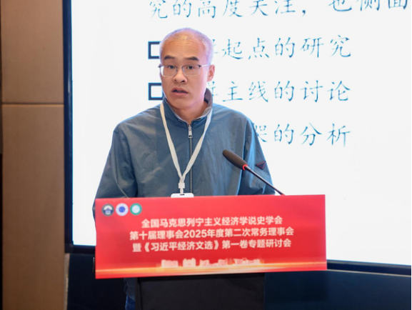 学会常务理事、中国人民大学马克思主义学院常庆欣教授发表主旨演讲,题为《习近平经济思想的体系化发展》。他指出体系化研究应追求贯穿思维—过程—结果的“唯一科学体系”,厘清经济思想与其他子体系的内在同一性。他系统梳理了习近平经济思想的发展脉络脉络与内在逻辑,彰显其对高质量发展的根本指引。