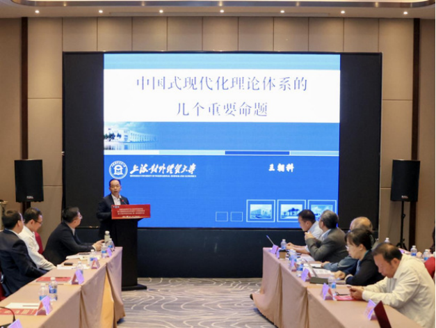 学会常务理事、上海对外经贸大学马克思主义学院王朝科教授以《中国式现代化理论体系的若干重要命题》为题作了主旨演讲。他提出研究现代化问题必须建立一个基准即参照关系,强调中国共产党登上历史舞台成为领导阶级是中国式现代化的政治前提。中国式现代化创造了人类文明新形态,这条道路会在全球的现代化星图上,持续闪耀出越来越清晰而持久的中国坐标。