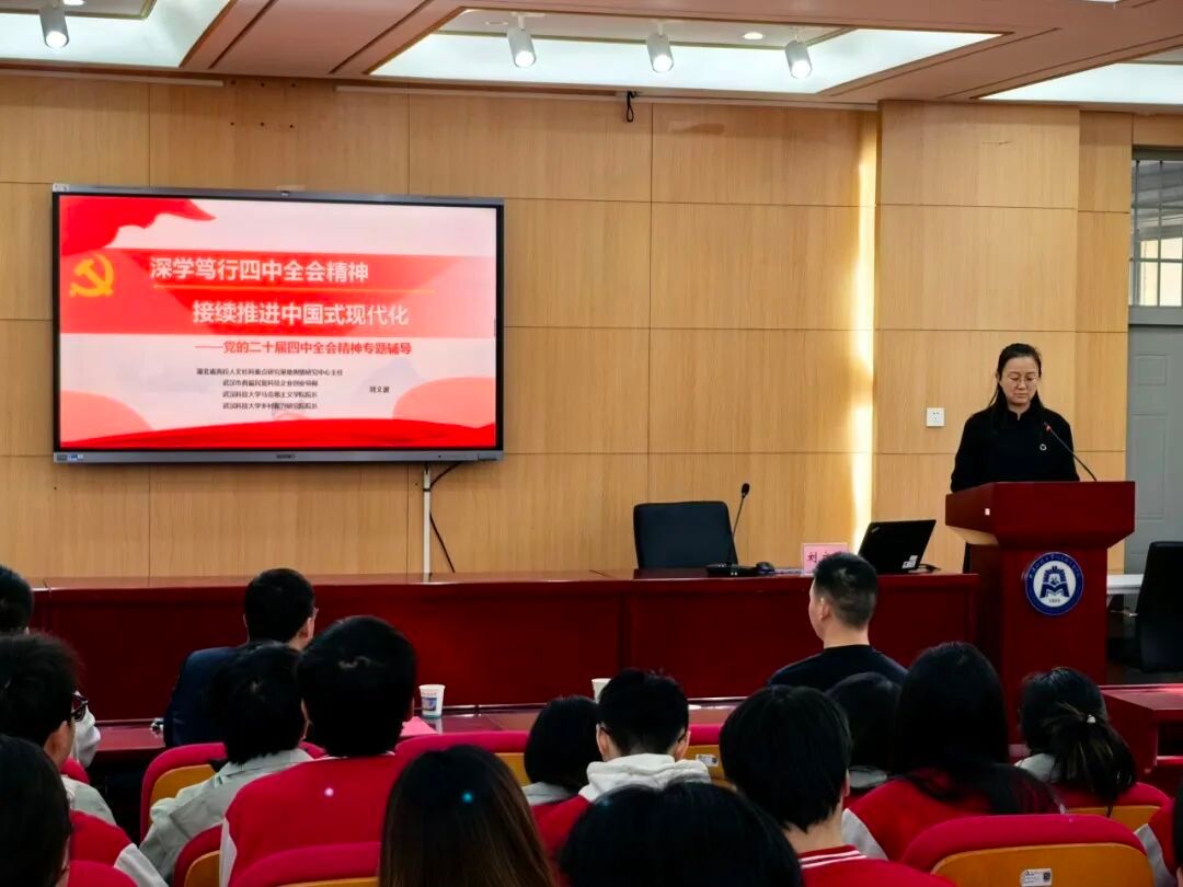 为进一步学习宣传贯彻党的二十届四中全会精神,引导青年学子深刻领会全会精神的丰富内涵和实践要求,帮助依托校“青马工程”组建的新一届青年讲师团更好地开展宣讲工作,11月27日下午,武汉科技大学马克思主义学院院长刘文波受邀为校“青马工程”第十一期英才领航班和第四期研究生支教团专项班全体学员作“党的二十届四中全会精神宣讲”辅导报告。本次学习活动由校团委书记王媛媛主持,校团委兼职副书记龚旭、校团委办公室主任周习海参与学习。
