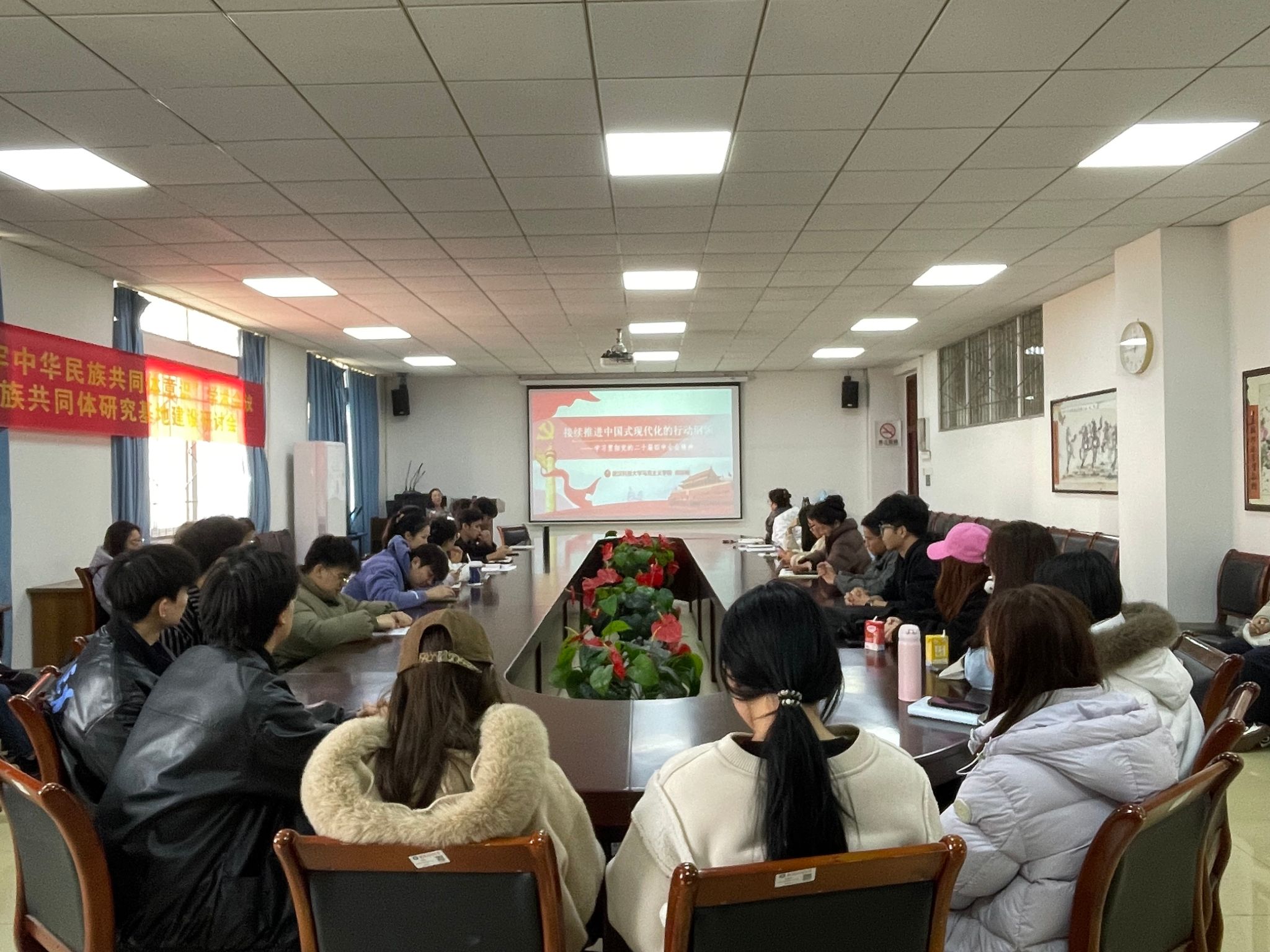 本网讯(通讯员曾舒琪)12月11日,全国高校“双带头人”教师党支部书记郑琼梅教授为我院学生党支部作题为《接续推进中国式现代化的行动纲领——学习贯彻党的二十届四中全会精神》的宣讲报告,支部全体党员、发展对象及入党积极分子共同参会学习。