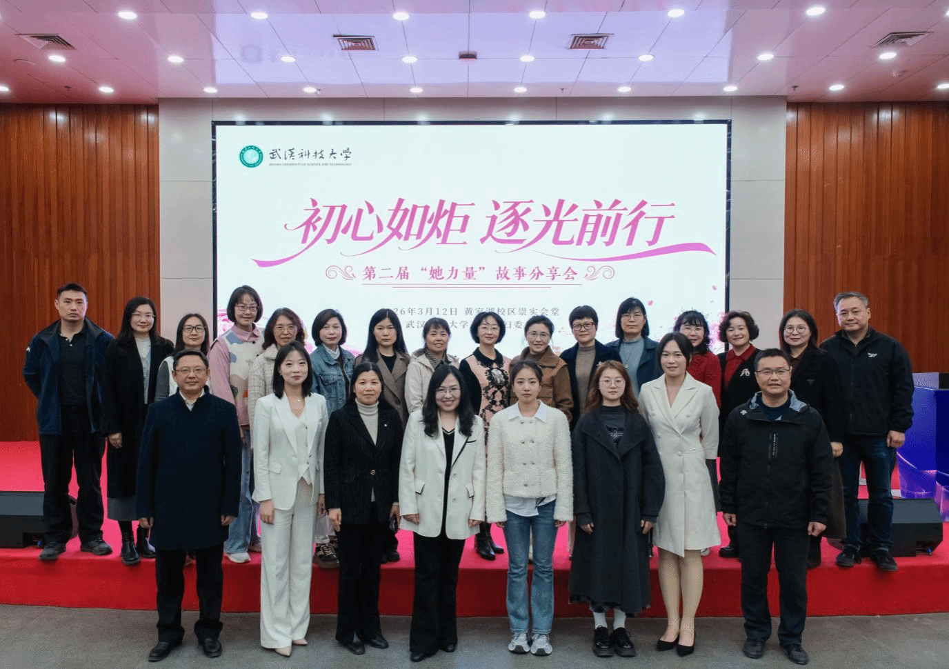 武科大网讯 为庆祝第116个“三八”国际妇女节,彰显新时代女性的巾帼风采与奋斗力量,3月12日下午,校工会、妇委会于黄家湖校区崇实会堂举办“初心如炬,逐光前行--第二届‘她力量’故事分享会”。本次分享会由校工会常务副主席丁宇主持,研工部负责人、各学院工会主席、妇委会分会主任,以及全校女教师、女大学生代表共同参与。
