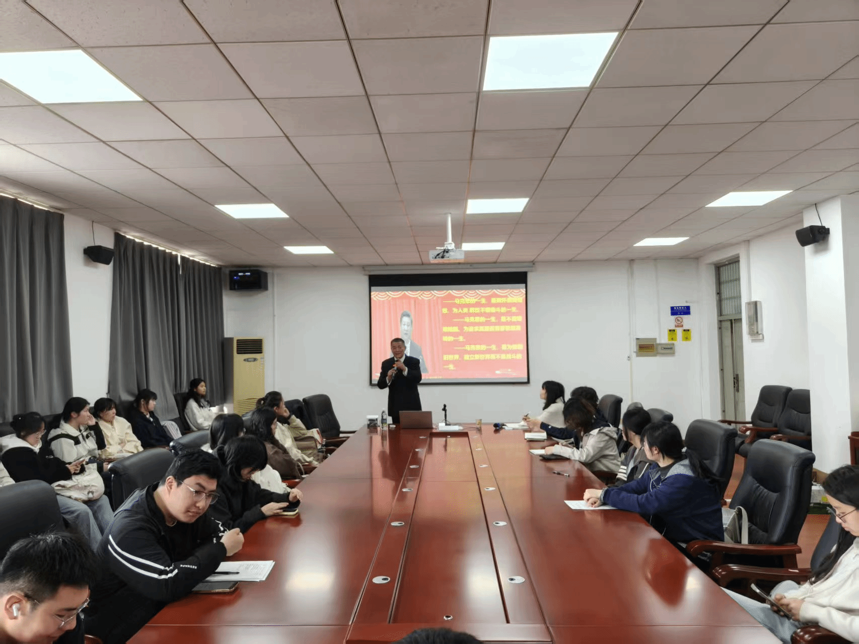 学院关工委扎实开展“银发领航育新人”主题活动,邀请热心关心下一代工作的离退休老干部、老教师为在校学生开展专题思政报告,引导广大青年学子以银龄榜样为标杆,勤学笃行、砥砺品格,努力成长为德智体美劳全面发展的新时代马院学子。