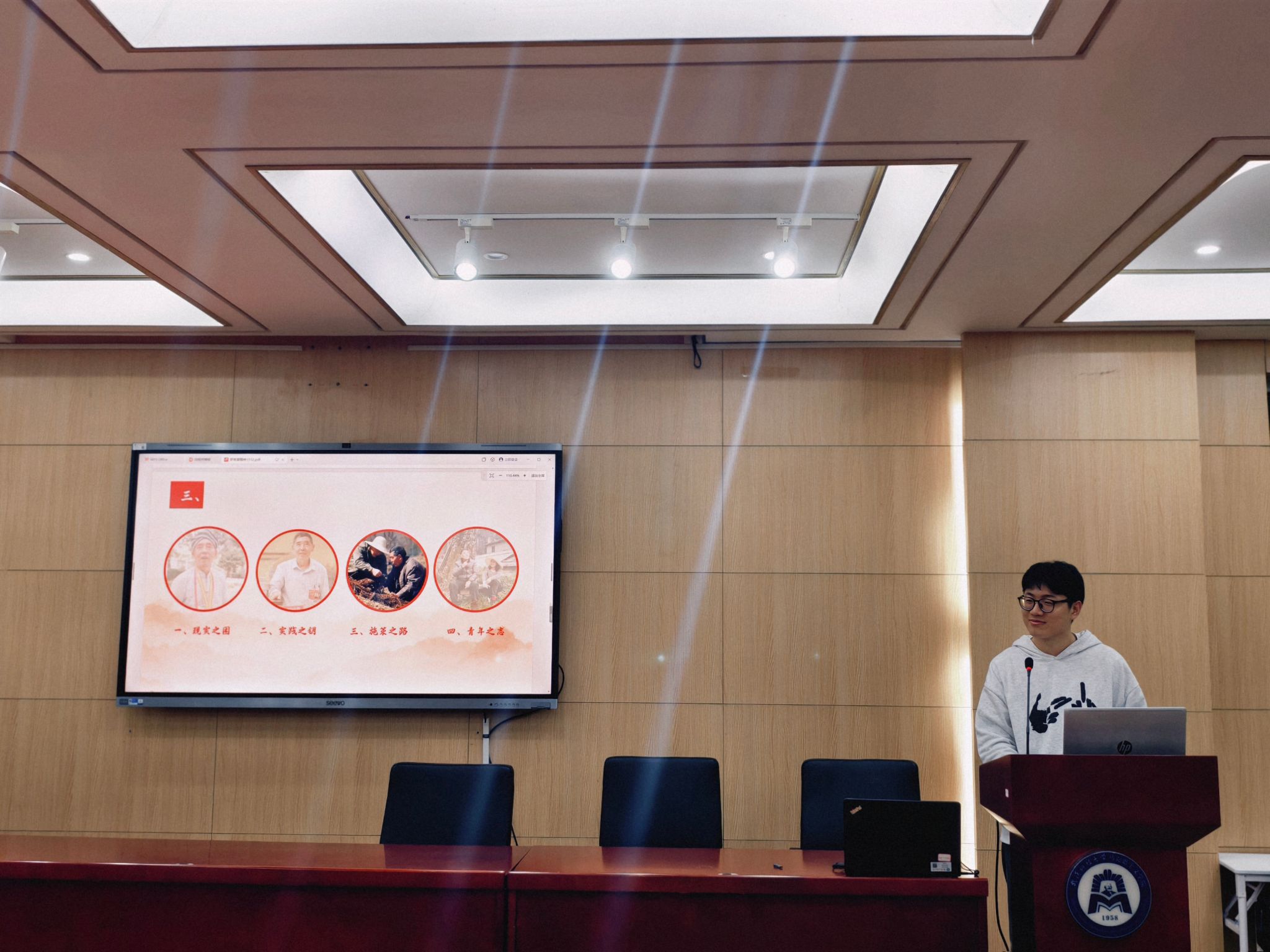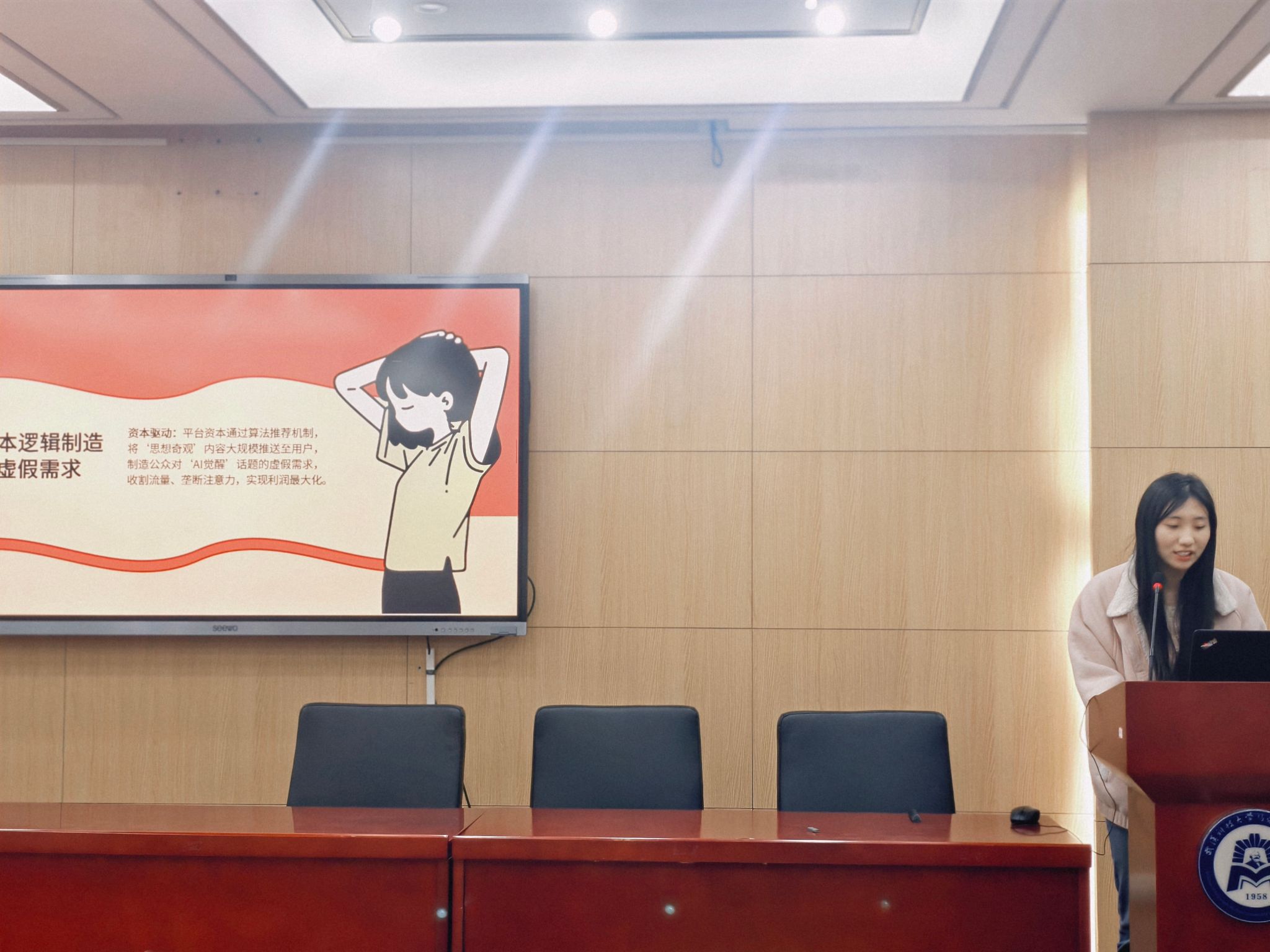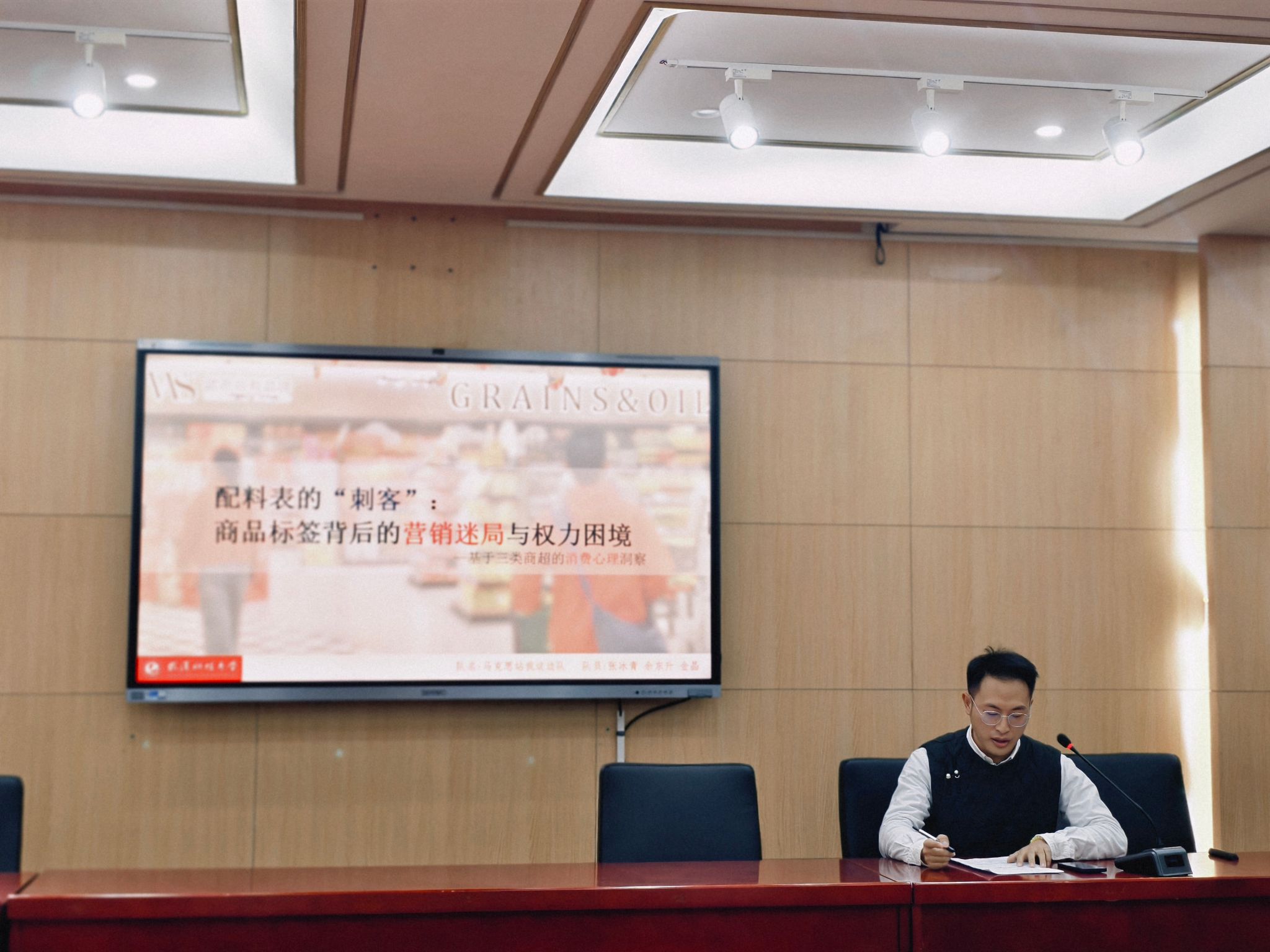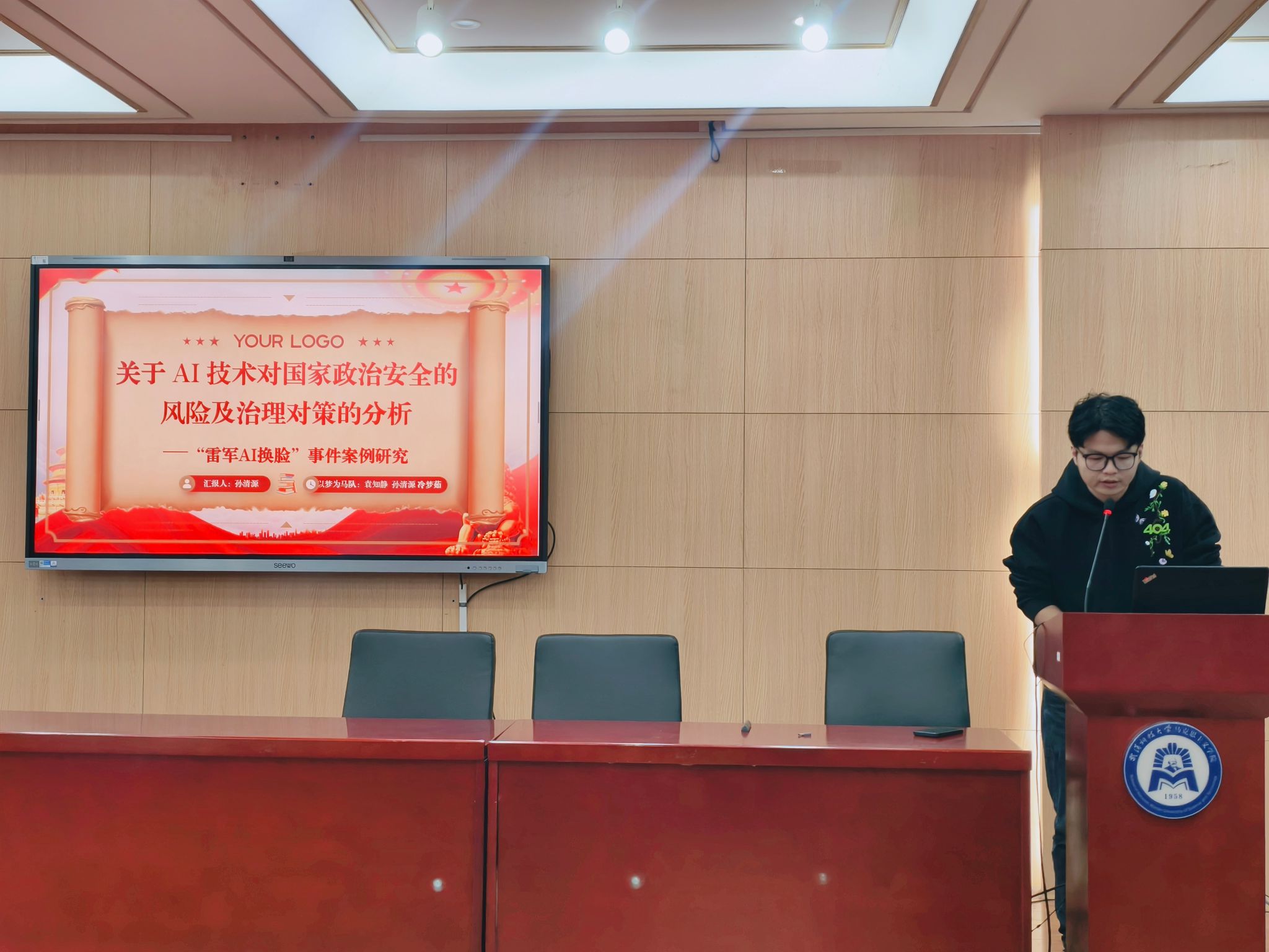 初赛现场分为案例展示、观点陈述与评委提问三个环节。比赛中,各参赛队伍以PPT展示为载体,逻辑清晰地阐述案例背景、分析视角及核心观点。参赛队伍围绕“虚实交织领域的意识形态新挑战:关于采访AI自我认知Sora视频现象”“罗官章精神:时代解读与乡村产业振兴路径探析”“关于AI技术对国家政治安全的风险及治理对策的分析—基于雷军AI换脸事件的案例研究”“配料表的刺客:商品标签背后营销迷局与权力困境”等多个时事热点领域,选取典型案例进行深度剖析。作品中既有对国家政策的精准解读,也有对社会现象的理性审视,更有结合专业知识提出的创新性解决方案,充分体现了我院学子的广阔视野与扎实学识。