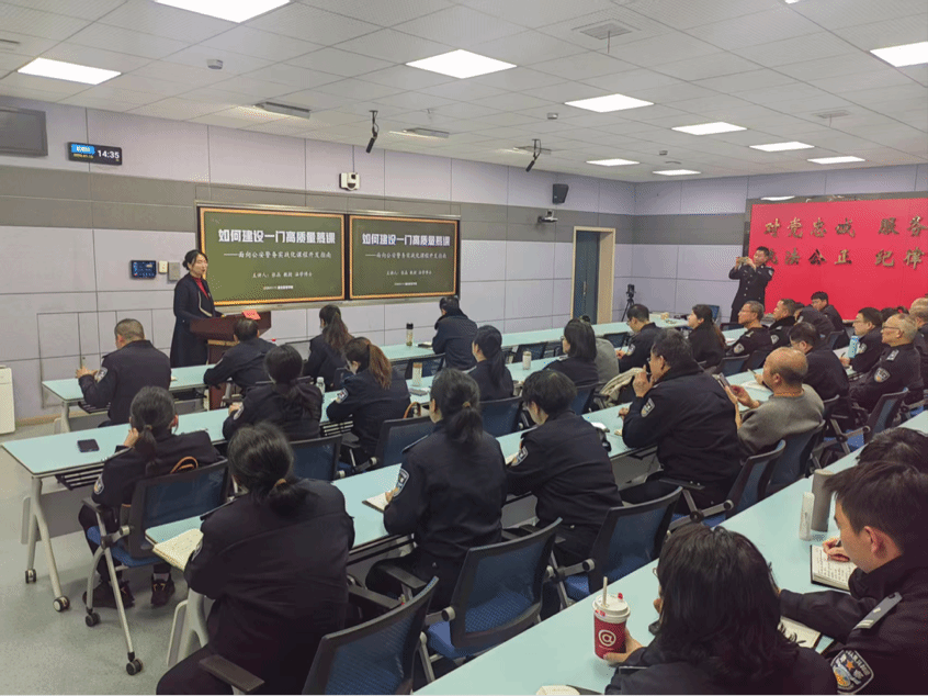 报告以《如何建设一门高质量慕课—面向公安警务实战化课程开发指南》为题,围绕“建设理念、建设流程、实战案例、常见问题与对策、总结与行动建议、智慧课程展望”六大板块展开。张晶教授指出,课程建设应以习近平新时代中国特色社会主义思想为指导,深入贯彻落实公安部、教育部《关于加快推进公安高等教育高质量发展》的有关要求,落实省公安厅《全省公安警务实战化教学培训通用精品课程建设工作方案》部署要求,以“实战引领教学、教学服务实战”为核心,采用“1+2+3+4+5”团队共建模式,以精品慕课建设为抓手,推动公安教育从传统教学向智慧教育跨越。